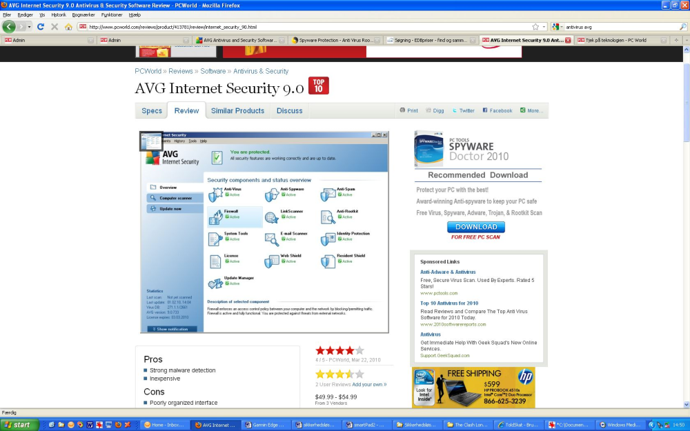 Og femtepladsen går til - BitDefender Internet Security 2010. Solid beskyttelse til en billig penge.