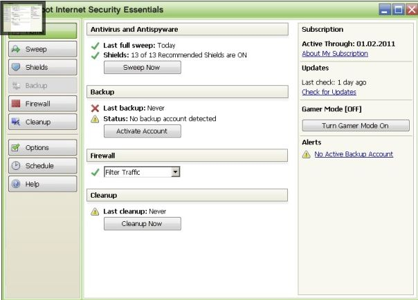 Webroot Internet Security Essentials er i al væsentlighed Webroot's SpySweeper antivirus/antispyware applikation med bonusprodukter som firewall, antispam, backup-software og beskyttelse, når der surfes på internettet.