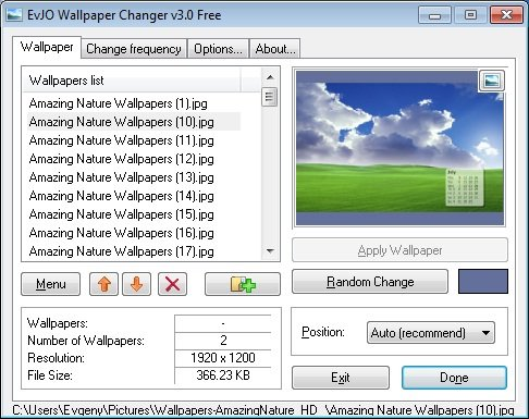 EvJO Wallpaper Changer (besøg websiden her | hent programmet her) har en anderledes prioriteringsliste med færre restriktioner, du kan dog ikke synkronisere baggrundsbilleder med filmapper og aktivere slideshow-funktionen.