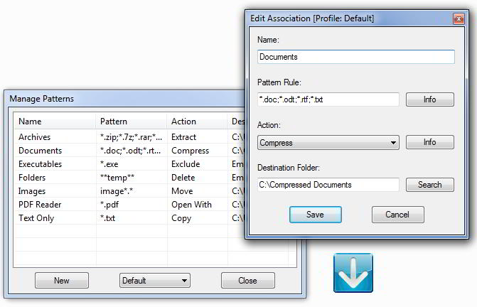 Hvis du henter en fil, der er af typen jpg, png eller gif, kan du eksempelvis vælge, at DropIt skal flytte filen til Windows' billedmappe. Eller hvis en tekstfil indeholder et bestemt nøgleord, skal det placeres i en given mappe.