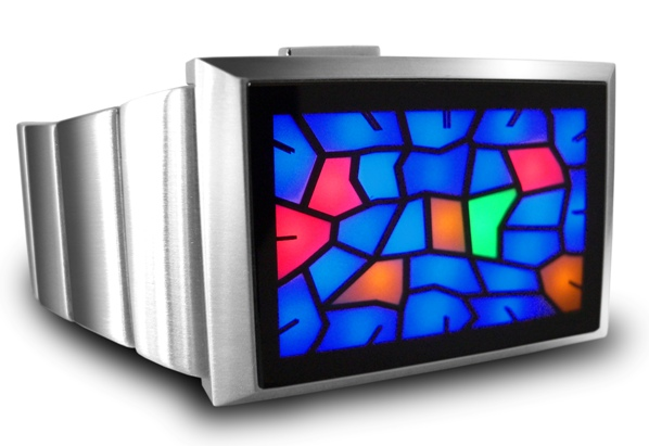 Urkassen er udført i børstet rustfrit stål, og når man trykker på en knap på siden af uret, begynder dioderne at blinke, men kun i syv sekunder, så man skal være god med farver og forme.