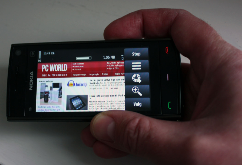 Modsat tidligere Nokia-modeller har X6 en skærm, som ikke bare er trykfølsom - men berøringsfølsom (kapacitiv). Det er en fornøjelse, og billedet er klart og skarpt. Diagonalen på 3,2 tommer lyder af meget, men fordi skærmen er i 16:9 format, bliver den lodrette visning ret smal.
