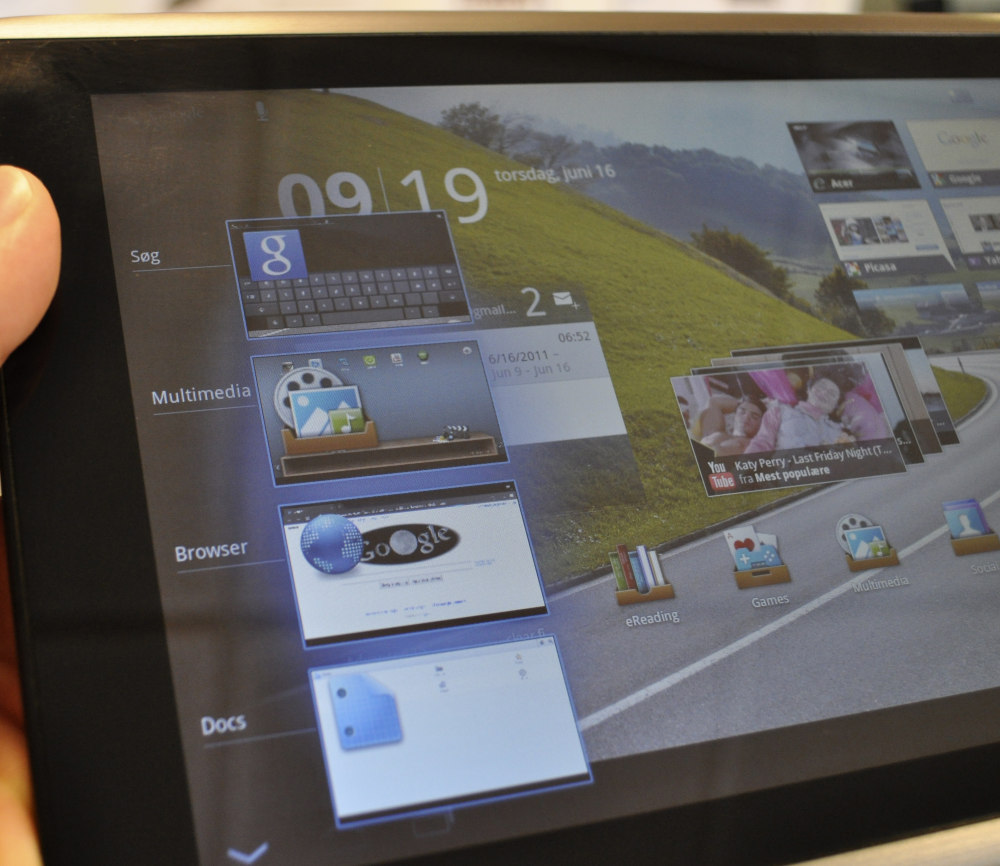 Rent designmæssigt har Acer fået det bedste ud af Android 3.0, og derfor er det ærgerligt, at responsiviteten til tider føles lidt ujævn. Det ser ellers flot ud på skærmen, der med sin opløsning på 1200 x 800 pixel ikke ligger på den lade side.