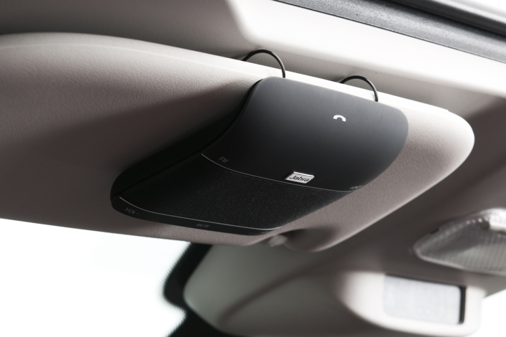 Håndfri mobiltelefoni i bilen bliver ikke meget nemmere end med Jabra Freeway, der hæftes fast i solskærmen.