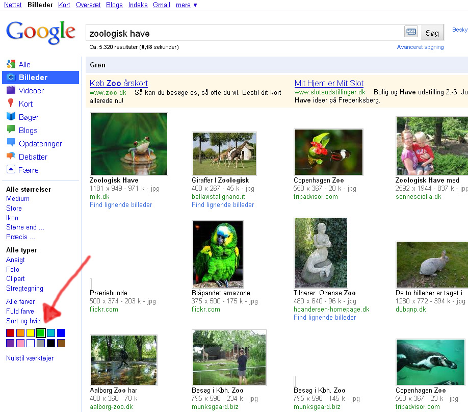 Du kan vælge at filtrere fotos efter den mest dominante farve i billedet og få andre resultater på samme søgeord. Her har vi valgt grøn.