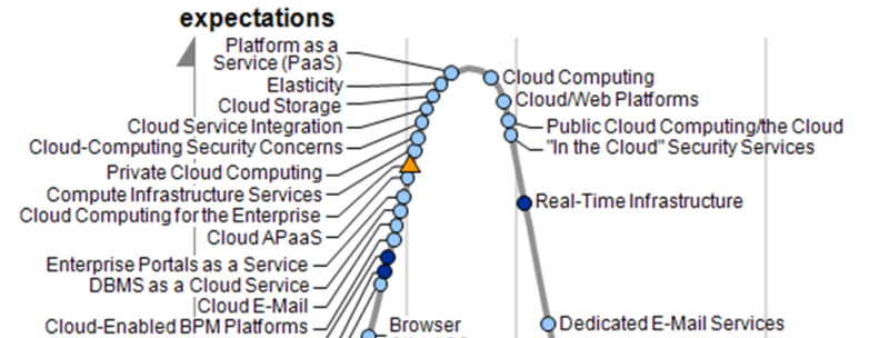 Gartners cloud computing hype cycle illustrerer denne forskellighed.