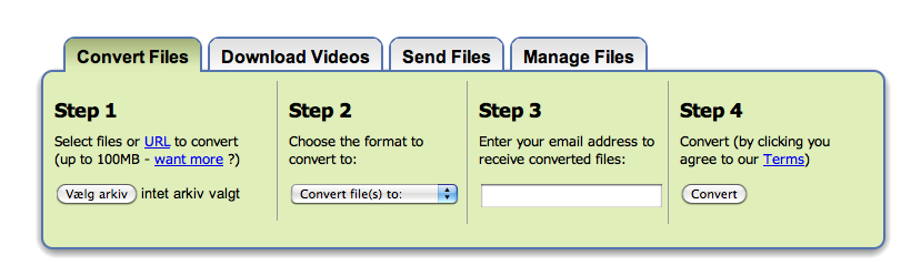Når du har uploadet din fil og valgt, hvilket format du vil have konverteret den til, skal du blot indtaste din mailadresse. Kort tid efter vil du modtage en mail med et link til din fil, der nu er konverteret til det nye format.