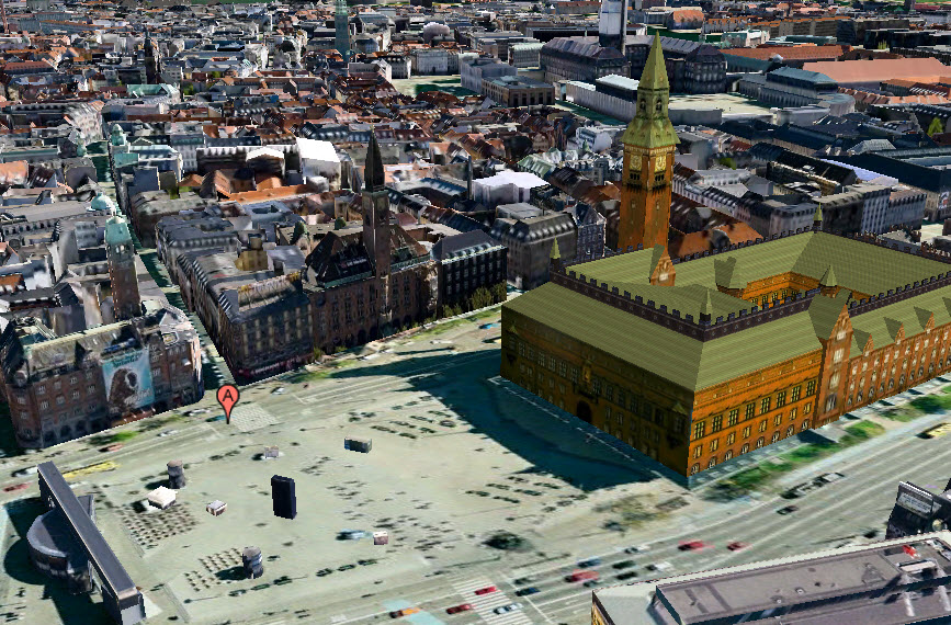 I Danmark er det blandt andet muligt at se en 3D-udgave Rådhuspladsen i København ved at klikke her.