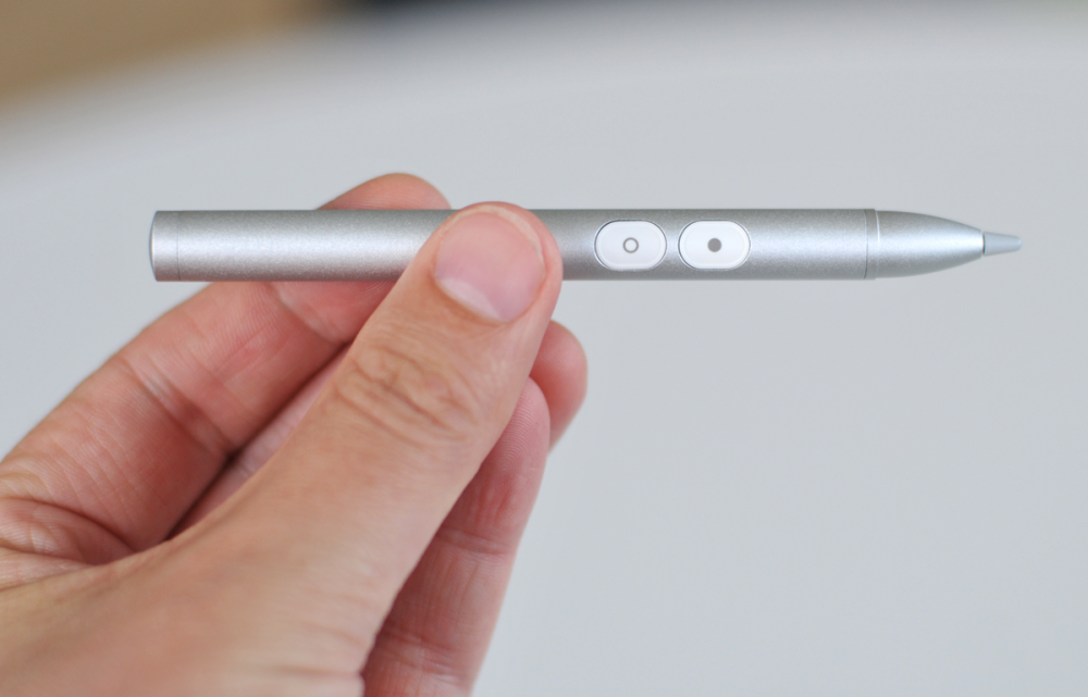 Det er virkelig ærgerligt og begrænser naturligvis funktionaliteten. Det betyder blandt andet, at du kan skrive lidt noter, men når du skal gemme, så skal du have pegefingeren frem og trykke på skærmen.