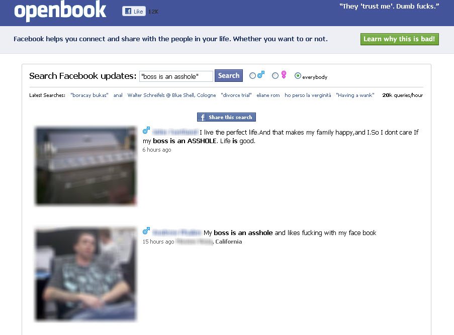 På Youropenbook er det muligt at finde beskeder om hvad som helst. Tast løs i søgefeltet og du får adgang til massevis af statusopdateringer lige fra de pinlige til de fjollede.