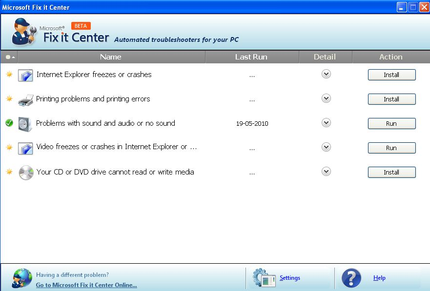 Microsoft's Fix It Center forsøger selv at finde ud af, hvad der er galt med din XP- eller Vista-baserede pc og retter også automatisk de fejl, tjenesten finder.