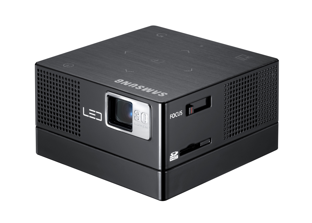 Samsungs SP-H03 er en mikroprojektor, der er så lille, at den kan ligge i hånden.