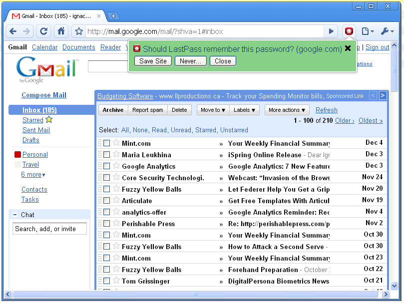 Desuden kan der være sikkerhedsproblemer forbundet med at gemme passwords i din browser, fordi det i princippet betyder, at alle kan sætte sig ved din computer og få adgang til dine passwords-beskyttede tjenester.
