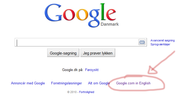 Vælg den internationale Google.com under søgefeltet. Klik for større foto.