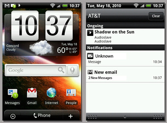 Android derimod har en bekvem besked-bar med et ikon for hver af de ventende beskeder. Besked-bar'en kan trækkes ned og på den måde afsløre flere detaljer om hver besked.