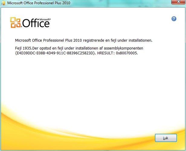 Stopper din Office 2010-installation med den lakoniske fejlmeddelelse: Fejl 1935?