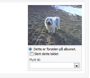 Når du har klikket dig ind på albummet, skal du vælge linket 'Rediger album'. På den nye side skal du vælge 'Rediger billeder'. Billederne i albummet vil nu blive vist under hinanden i egen kolonne i højre side.