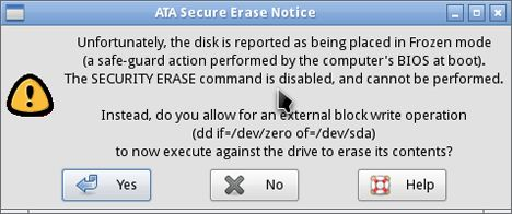 Hvis du får en melding om, at disken er "frozen", kan det godt udgøre et problem. Vi anbefaler, at SSD-disken er koblet på den primære eller sekundære SATA-tilslutning på den diskcontroller, der er direkte tilknyttet chipsættet. AHCI skal være aktiveret i bundkortets BIOS.