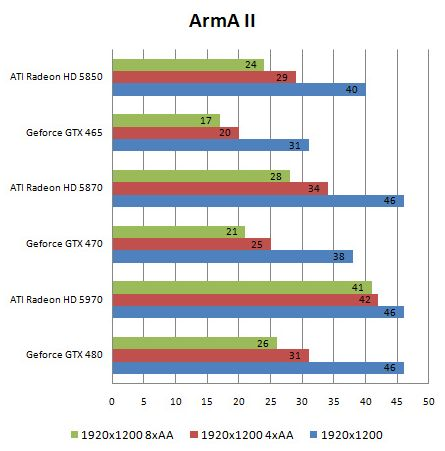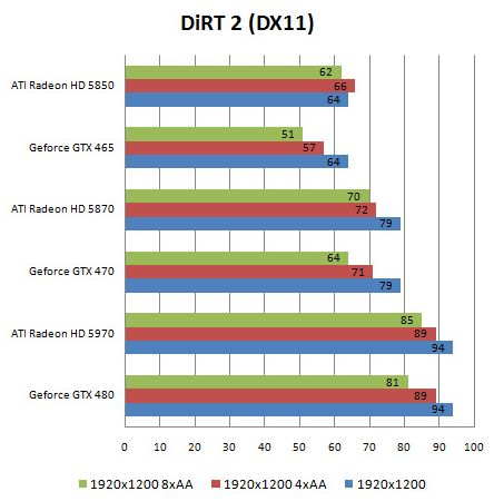 HD 5970 uddeler i de fleste scenarier betragtelige kindheste til GTX 480, selvom kortet kun koster en anelse mere.