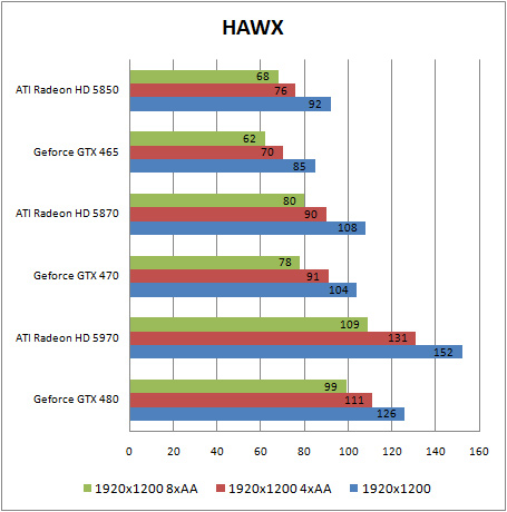 På den endnu vildere del af ydelsesskalaen lurer derimod HD 5970 med intet mindre end to grafikprocessorer.