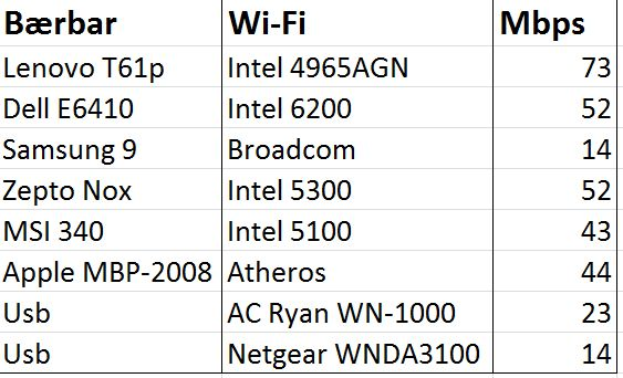 Med udgangspunkt i denne problemstilling har vores kolleger på PC World Norge testet løs med en lang række Wi-Fi-løsninger i forskellige bærbare fra Lenovo, Dell, Samsung, Zepto, MSI og Apple.