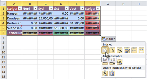 Når du indsætter kopien et andet sted i regnearket eller i et andet regneark, højreklikker du i den celle, hvor du vil indsætte den kopierede celle, eller hvor det kopierede celleområde skal starte, og vælger derefter Indsæt speciel | Sæt ind i genvejsmenuen.