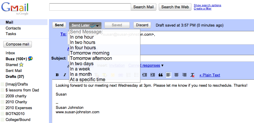 Det betyder, at du kan sidde med en varm kop kaffe på din kontorplads og skrive en mail til dine kolleger og indstille den til at blive afsendt i løbet af natten, mens du ligger trygt i din seng.
