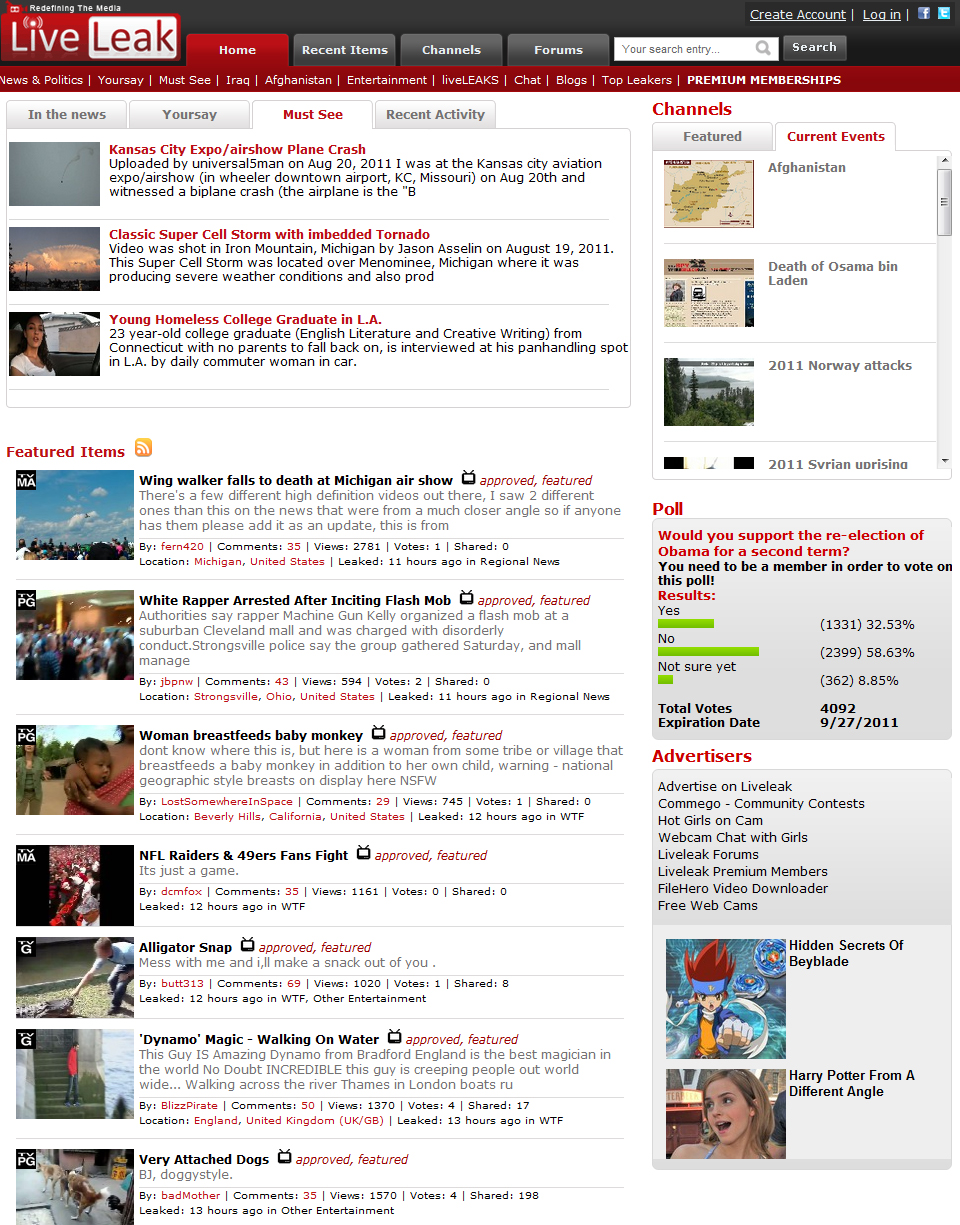 Det er ikke altid så meget at grine ad på LiveLeak, der er en webside med videoer af det, som tv-stationerne normalt klipper væk i deres nyhedsudsendelser.