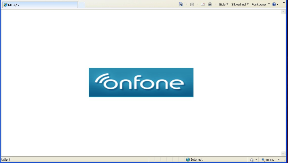 Inde på www.onfone.dk var der i cirka halvanden time kun et billede af Onfones logo, mens hjemmesiden bar titlen "M1 A/S".