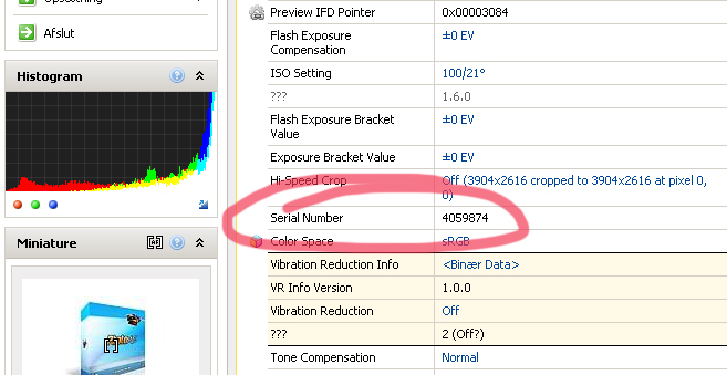 Og nu spørger du måske dig selv: hvad er serienummeret på mit kamera, og hvis jeg ikke har skrevet det ned, kan jeg så finde det alligevel?