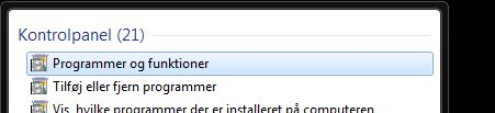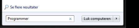 Det er hurtigst, hvis du starter med at skrive 'Programmer' i Startmenuens søgefelt.