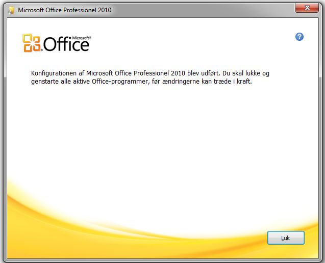 Til sidst skal du lukke det aktuelle vindue og genstarte maskinen. Hvis problemet eller problemerne mod forventning ikke er blevet løst, kan du benytte samme fremgangsmåde, men i stedet vælge 'Fjern', når du har højreklikket på Office-pakken på listen over installerede programmer. Når pakken er fjernet, bør du genstarte og installere softwaren på ny.