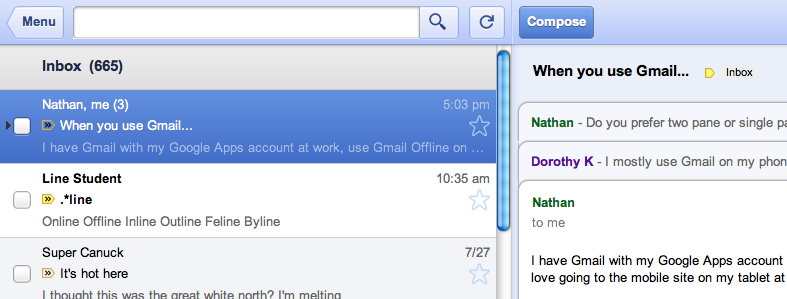 De nye apps er skrevet i kodesproget HTML5, og Gmail-app'en er næsten magen til den brugerflade, som Gmail har har på smartphones og tablets. Det er dog langt fra nogen tilfældighed, fordi de nye HTML5 apps er baseret på tablet-udgaven af Gmail, som netop også netop er designet til at kunne bruges i offline-tilstand.