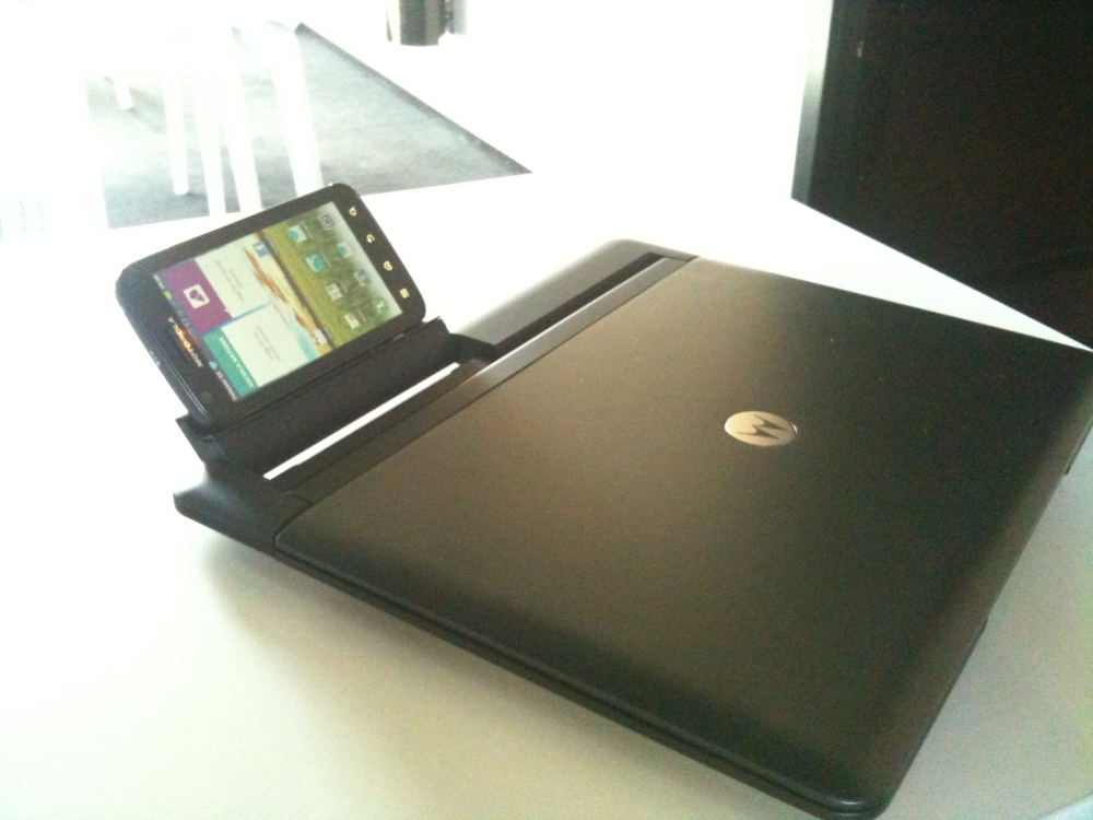 Til gengæld kan man montere Atrix i en dock-lignende anordning på bagsiden, og så er det telefonen, der leverer al "computerkraften".