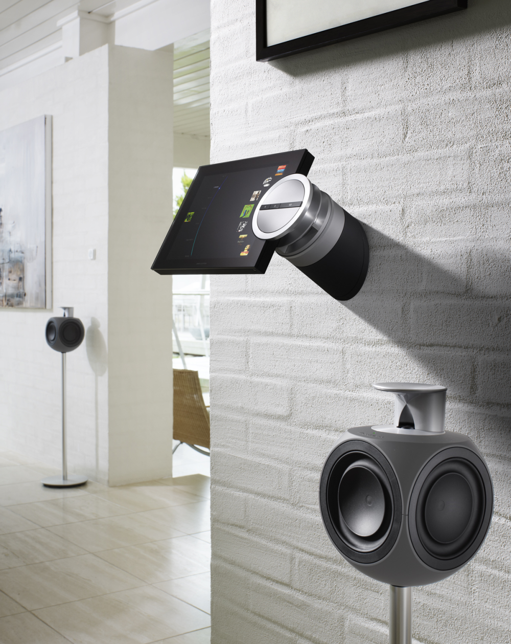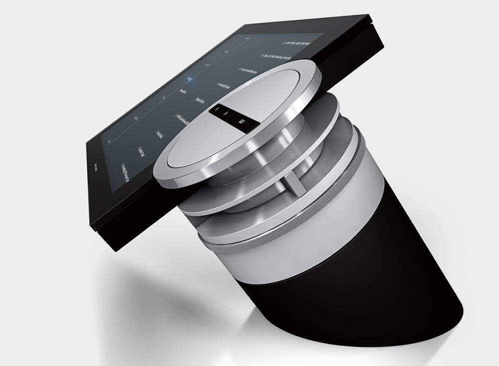 Når du første gang hviler blikket på BeoSound 5 Encore, ligner det umiddelbart en tablet monteret på en cylinder. Dermed giver den det umiddelbare indtryk, at der er touch-funktion på dyret.