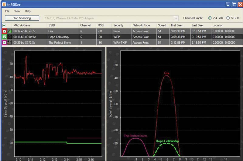 InSSIDer: Uanset størrelse og form af dit hjem eller kontor oplever du sikkert, at der er blinde punkter, hvor dit trådløse netværks signal er for svagt. InSSIDer hjælper dig til at tjekke efter netværkskonflikter med naboens trådløse opsætning. Ud fra den information kan du justere din trådløse router og på den måde løse problemet.