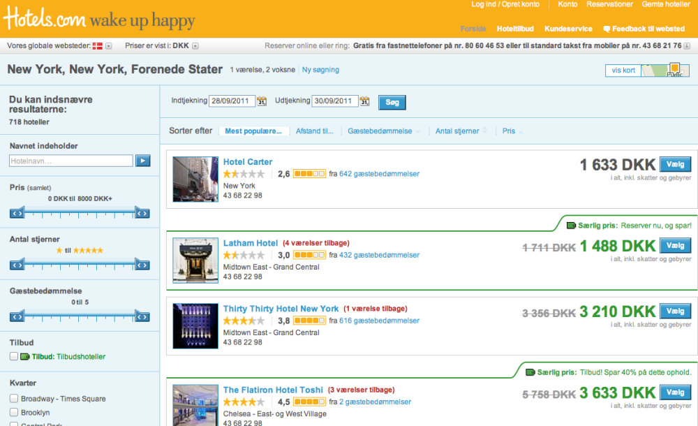 Det første, du skal gøre, er at gå ind på hotels.com, Expedia eller en lignende internetportal, der formidler hotelværelser.