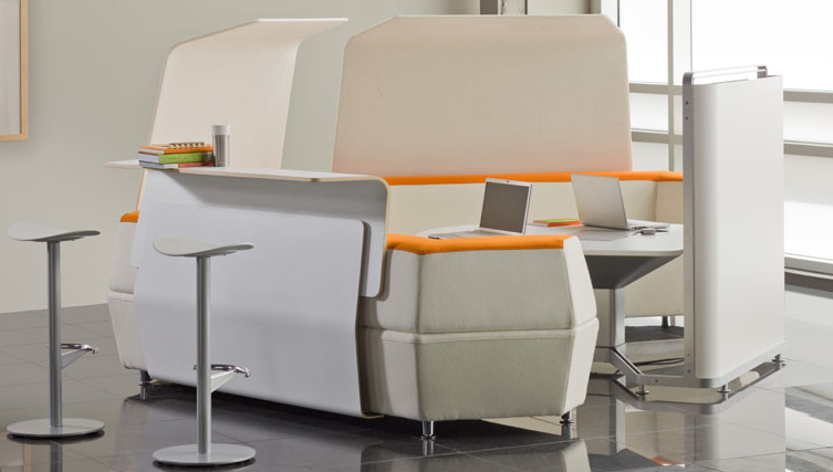 Virksomheden Steelcase har en anden løsning på, hvordan du kan lave små smarte møderum. Møderummene fra Steelcase kan placeres som små øer midt i fællesarealerne. Der er nærmest tale om et moderne bord-bænke-sæt, der er udstyret med skærme, der kan trækkes op bag ved siddepladserne, så du kan holde dine møder relativt uforstyrret.