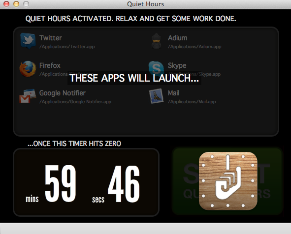 Det hjælper dig med at slå de mest distraherende programmer fra. Det kan eksempelvis være dit messenger-program, Skype og dit e-mail-prrogram.