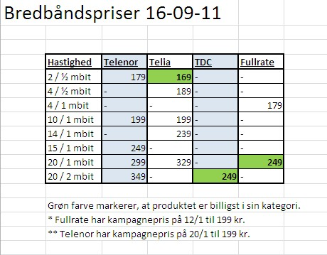 Det lyder på 169 kroner for en 2 megabit-linje, men for 10 kroner mere får kunden den dobbelte hastighed hos TDC's lavprisselskab, Fullrate.