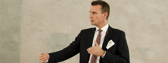 Torben Bonde fortæller forsamlingen, at næsten halvdelen af hans omkostninger går til eksterne leverandører og samarbejdspartnere. Derfor er et tæt samarbejde nødvendigt.