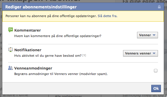 Du skal dog huske, at dine offentlige opdateringer ikke kun vil være synlige for dine abonnementer og venner, men for alle folk på Facebook, der besøger din profil.