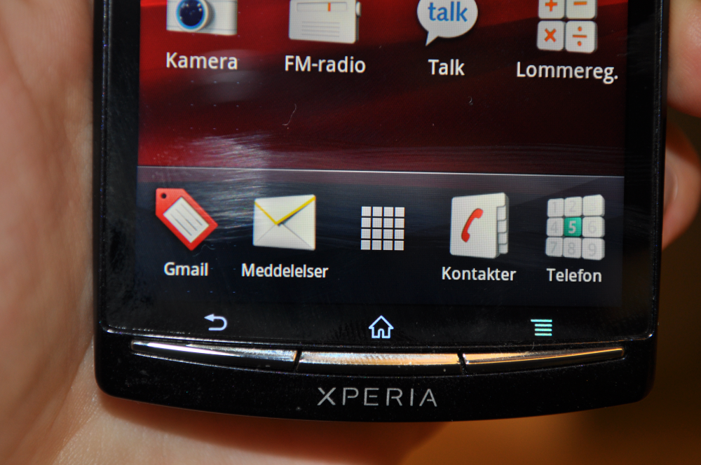 Sony Ericsson er gået i den helt anden retning med de tynde fysiske knapper placeret et godt stykke under skærmen, og det virker som en rigtig løsning. På den måde undgår du, at din finger en gang imellem lige strejfer tilbage-knappen og dermed hopper ud af den mail eller besked, du var i gang med at skrive.