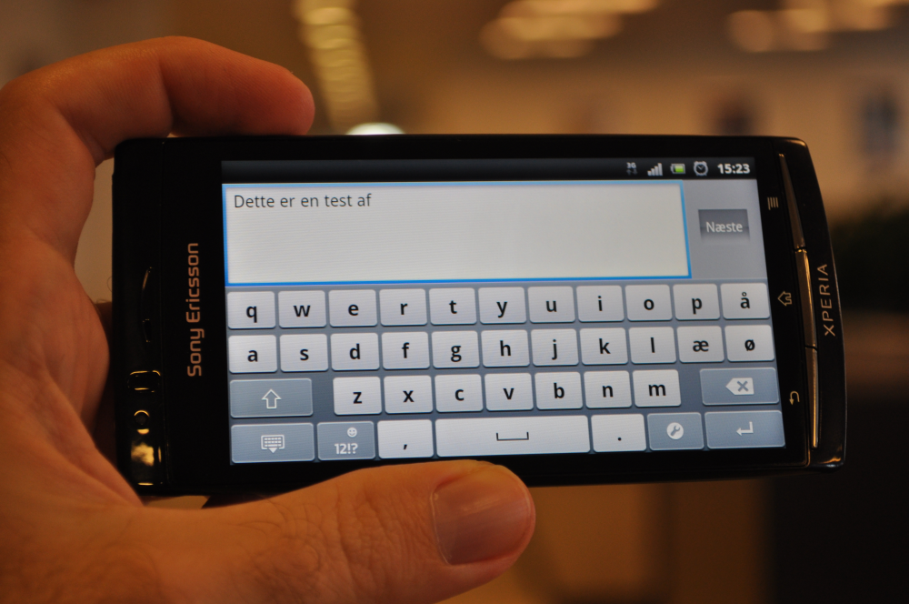 Samtidig har Xperia Arc S en intelligent ordbog, som fungerer rigtig godt og ikke mindst logisk. Under feltet, som du skriver i, er der en bjælke, hvor du kan se ordforslag ud fra, hvad du har tastet på tastaturet.