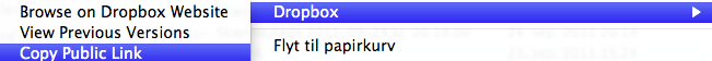 Når du har gjort det, højreklikker du på filen, vælger menupunktet "Dropbox" og herefter "copy public link".