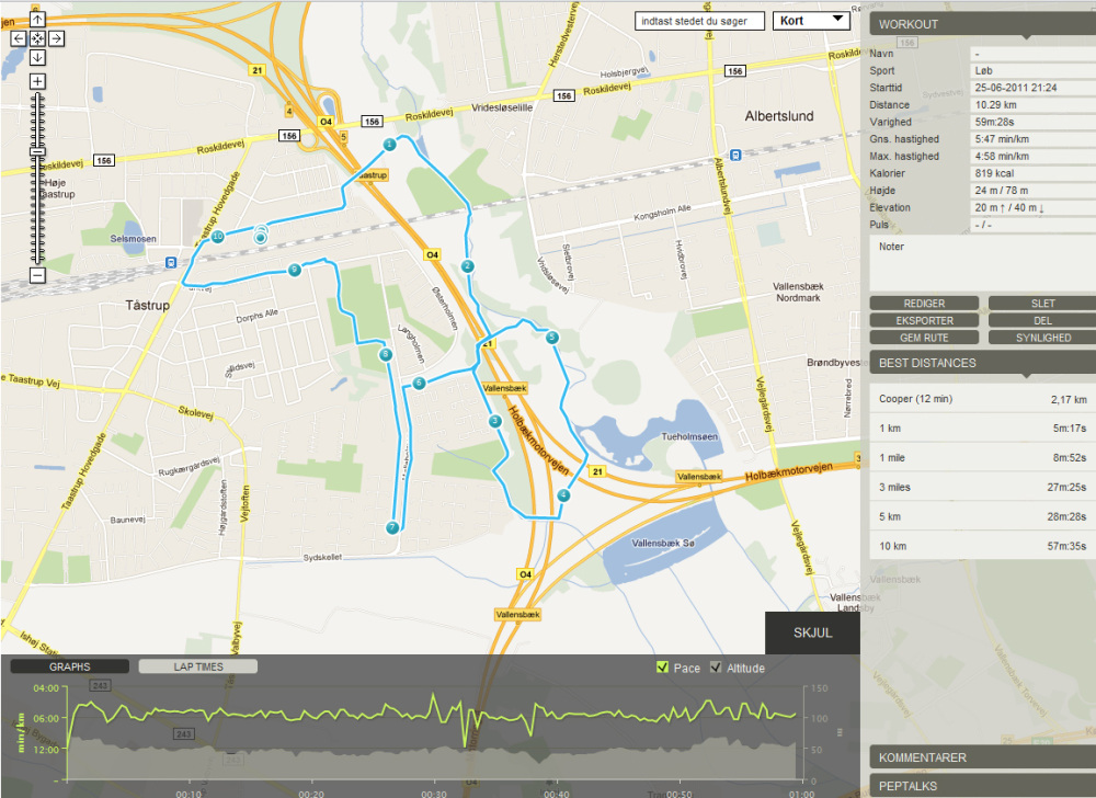 Da det endelig lykkedes, fik vi en fremragende visuel oversigt over løberuter og hastighed undervejs.