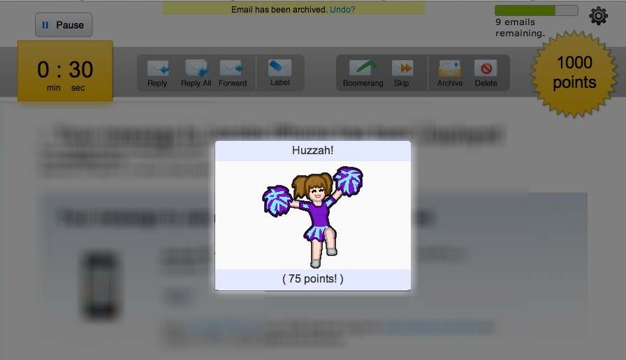 Før tiden udløber, skal du indsamle så mange point som muligt. Eksempelvis bliver det belønnet med 75 point, når du arkiverer en mail, mens du bliver frataget 25 point, hvis du vælger ignorere en mail og springe videre til den næste i bunken.