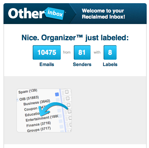 OtherInbox virker med Hotmail, Gmail og Yahoo-mail og kan organisere og sortere alle dine mails automatisk.