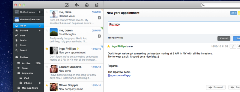 Og sætter du pris på netop disse karakteristika, finder du næppe en bedre mail-løsning til Mac end Sparrow.