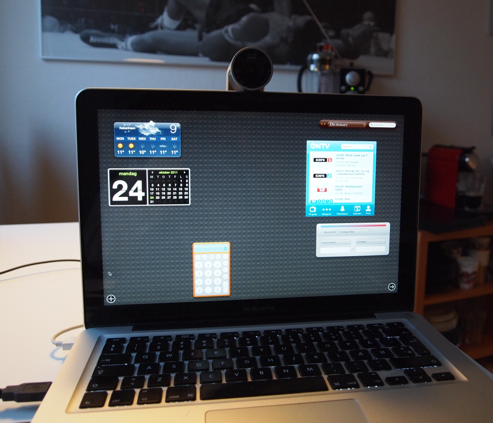 Du behøver ikke installere nogen særlig software for at komme i gang med at bruge kameraet. Er du i forvejen Skype-bruger, kan du blot smække kameraets usb-stik i din computers usb-port, og så er du øjeblikkeligt klar til at lave videoopkald. Og på denne skribents Macbook Pro valgte Skype automatisk det nye Cisco-kamera fremfor computerens noget ringere indbyggede webcam.